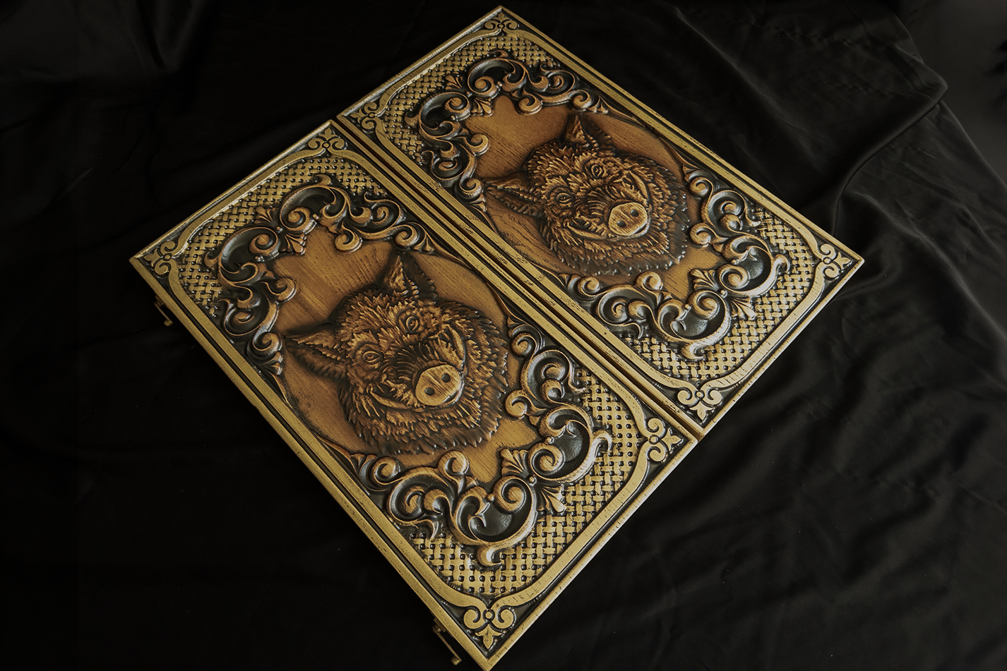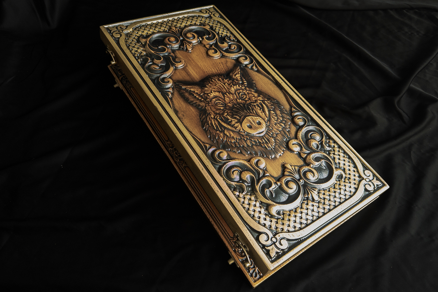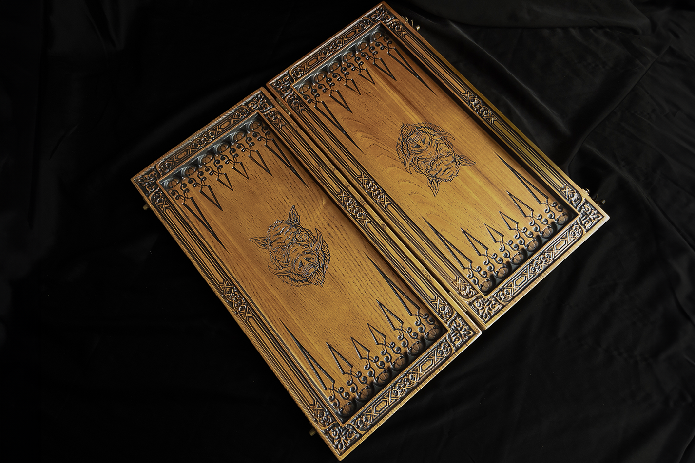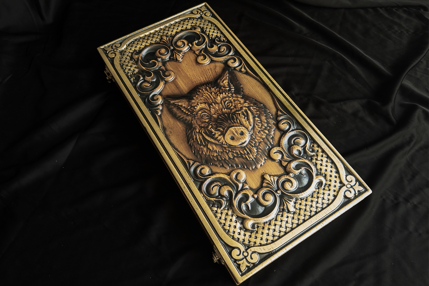 Aceste table de joc din lemn de frasin impresionează prin sculptura detaliată a unui cap de mistreț, înconjurat de motive decorative elegante. Fiecare detaliu este realizat cu măiestrie, oferind o piesă de colecție perfectă pentru iubitorii de natură și pasionații de jocuri de societate. Combinația dintre arta tradițională și funcționalitatea practică face din aceste table un cadou ideal și o adiție valoroasă în orice casă